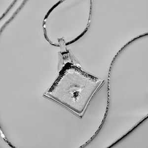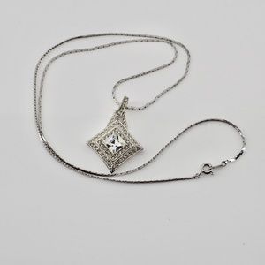 Crown Trifari Signed Square Silver Tone Rhinestone Pendant on Serpentine Chain