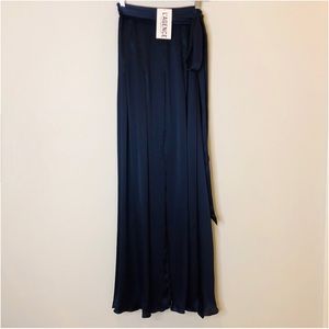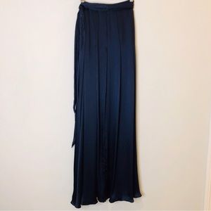 L'Agence Ocean 100% Silk Maxi Skirt High Slit Midnight Blue Small