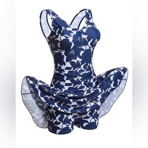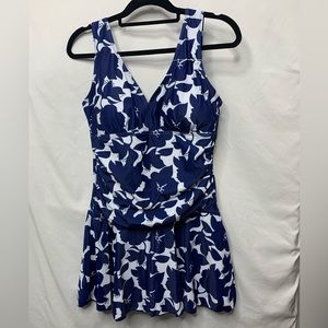 SOLD ❌Summer Mae Blue Floral Print Swimdress Bathing Suits | Large One Piece NWT
