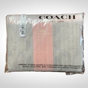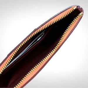Coach Corner Zip Wristlet in Signature Canvas Tan with Coral Stripe