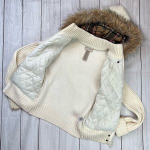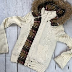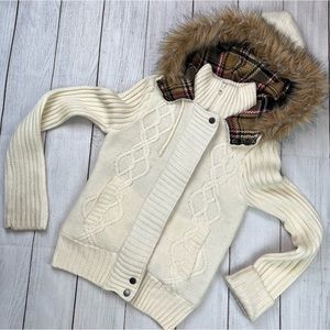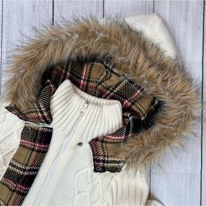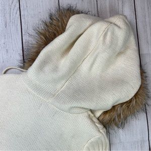 The original Arizona jean company womens hooded knit sweater size medium with fur along the hood. Preloved condition! Zipper works with no issues. Needs a wash. Please see all photos for measurements and condition! Offers welcome :) bundle and save!