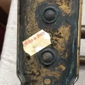 Made in Italy. The large one is approximately 26” long, 5 1/2” wide and approximately 5 1/2” deep. There is a small bit of paint or blemish of some sort on the knob as well. Please see photos.