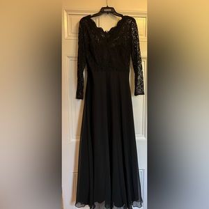 Dessy Collection Long Sleeve Lace and Chiffon A-Line Evening Gown - NWT