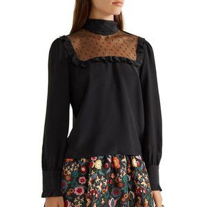 Red Valentino women's black 100% Silk Lace top / blouse Silk crepe de chine and tulle top