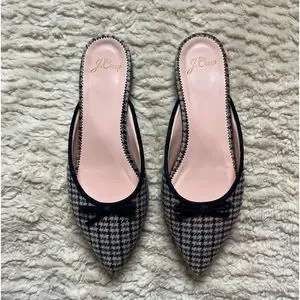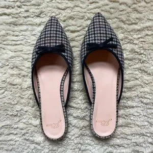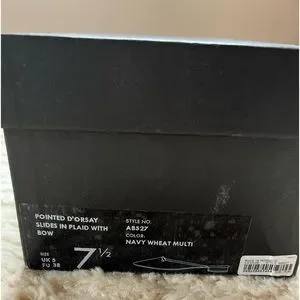 J.Crew Pointed D’Orsay Slides in Navy Wheat Multi Plaid with Bow 7.5