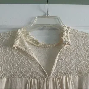 Super cute red and cream dress. Top of dress and sleeves are a crocheted material. 3-4 length sleeves. The dress does have a lining inside. Would be a cute option for winter or Christmas photos. Never worn.