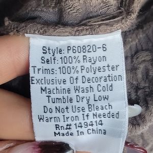 Material : Self 100% Rayon; Trim 100% Polyester