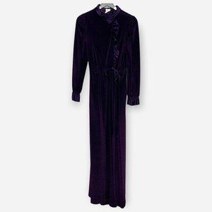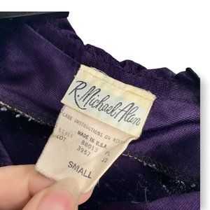 Vintage 80s Purple Satin Textured Velvet Long Robe Small