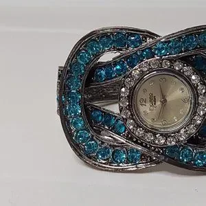 Analog Figaro Watch With Blue Plastic Stones