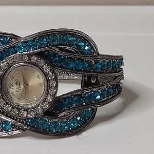Analog Figaro Watch With Blue Plastic Stones. Inside Measures 6.5 Inches. Routine Wear As Pictured. Battery Has Been Changed And Watch Has Been Tested And Keeps Time :) Check Out My Closet For Other Great Items!!! Thank You For Considering Making A Purchase.