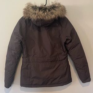 The North Face Women’s Greenland Parka. Excellent condition.It’s a beautiful gray color, love the belted waist for shape and is incredibly warm.