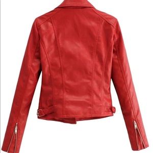 Vegan leather moto jacket zip up arms
