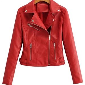 Vegan leather jacket zipper arms glam classic moto