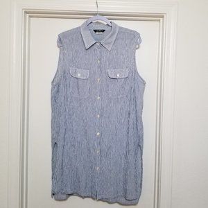 LAUREN Ralph Lauren blue white pin stripe cotton buttoned down sleeveless top