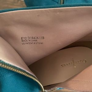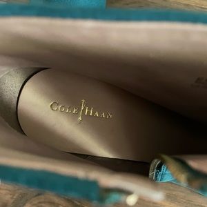 Cole Haan suede nubuck heeled boots with Nike Air technology for comfort. Like new, only worn once indoors. Color is a rich turquoise called dark teal with brown heels. Size zip for easy off and on. Style is “Cassidy.”