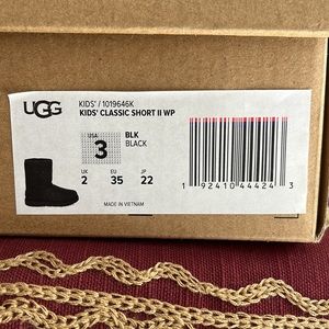 NWT NIB UGG Unisex-Child Classic Short Ii Waterproof kids size 3 (black)