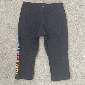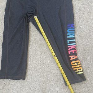 Ideology Crop Leggings Womens XL Run Like A Girl Colorful Capri Yoga Pants Grey