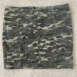 Free People Skirt Womens 8 Green Camo Zip Back Short Stretch Casual Mini