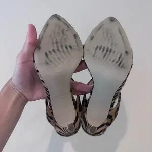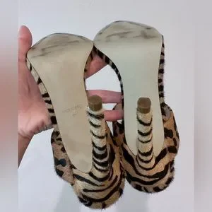 Steve Madden Cheetah Faux Fur Stilettos with clear toe strap. Worn once.