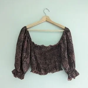 Details: Cropped, Square neck, Half sleeves, Ruffle trim, Black and brown