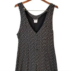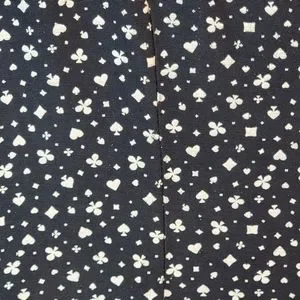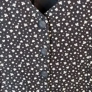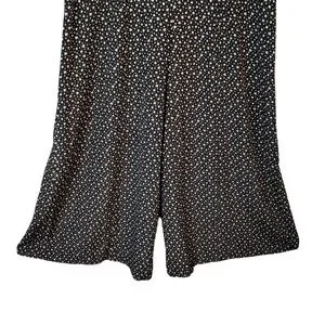 Big Vegas vibes on this vintage beauty. Perfect fir hitting the casino with its very subtle card suit theme Polka Dot pattern. Flowing pant suit. Perfect for a night out and a vintage 'fit. Buttons are to die for on this piece as well. Nial vintage wear. Slight discoloration (minor) on hems possible from dragging through something is pictured. The minor flaws are not very noticeable when worn.