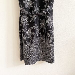 Ann Taylor Black & White Floral Tie Waist Shift Cap Sleeve Dress Size M Key Hole
