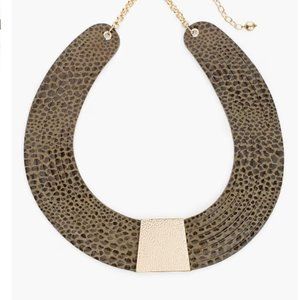 -Tempting snakeskin textures emboss a leather strand necklace, bound by a glittering gold-tone embellishment for added boldness and brilliance.