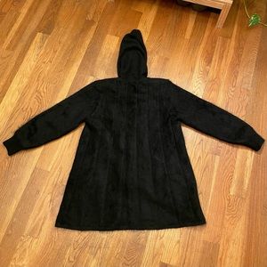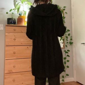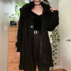 Cozy Black Angora Wool Sweater Coat with Giant Hood and Pockets Very Warm - M