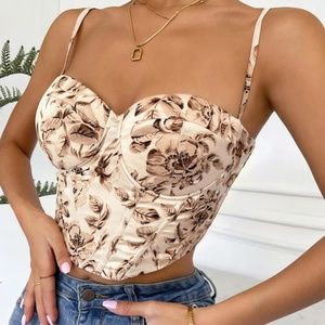 Boho Floral Print Lace up Cami Corset Cropped Top