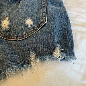 Abercrombie & Fitch High Rise Blue Distressed Mom Short, Curve Love, Sz 27 (4)