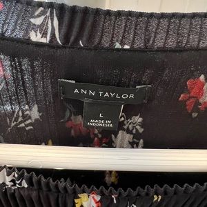 Black floral pleated chiffon top | Ann Taylor | Size L