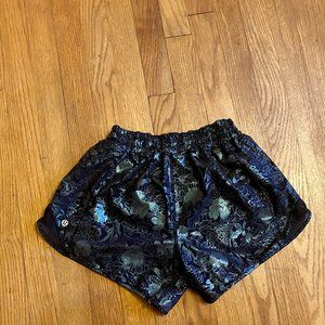 Lululemon Hotty Hot Low-Rise Lined Short 4" Logo Flourish Black Iridescent Foil
