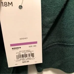 Disney Holiday Mickey Raglan Jumpsuit Jumping Beans Baby Kohls Christmas Sleeper 18M New Green