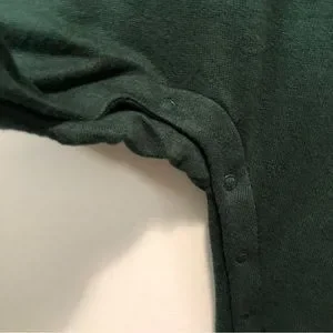 *Rayon, Polyester and Spandex blend; snap closure around crotch and legs to bottom (pictured)