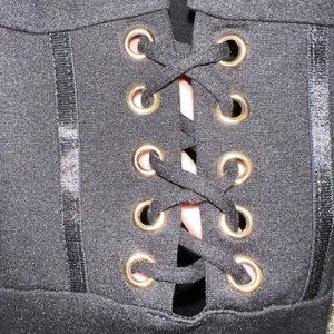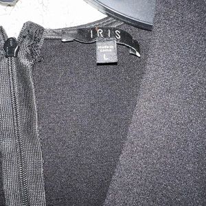 NWOT Iris black mini dress. With corset like front. V shape is low in front. Stretch. Size large. Smoke free. Beautiful and sexy dress.
