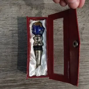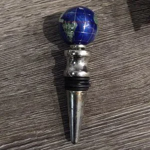 GEMSTONE GLOBE Champagne/Wine Topper. Pretty unique in my opinion. Has a red button closure box to keep in stored. Clear top. Some of the silver area tarnishing but overall good condition.