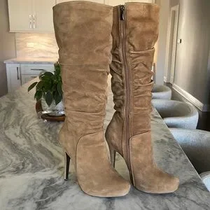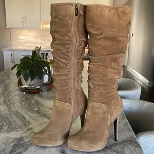 Luichiny ruched suede knee platform boots US 7