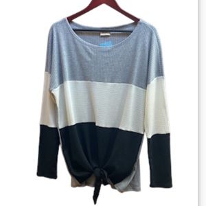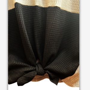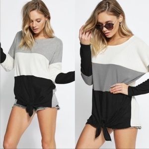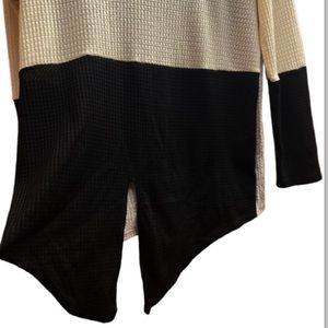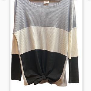 Waffle weave bold color block shades of black, gray and white. New with tags. Pair with your favorite slacked or jeans. This will be you “Go To” piece for that comfy easy feeling. Perfect gifting piece!