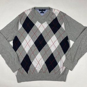 Tommy Hilfiger Pima Cotton Argyle Diamond Sweater Men's XL Gray Knit V Neck