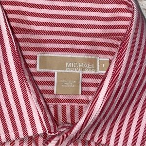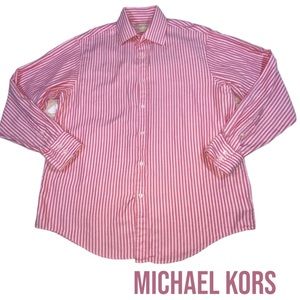 Men’s Michael Kors Red & Pink Herringbone Button Down Cotton Shirt - Large