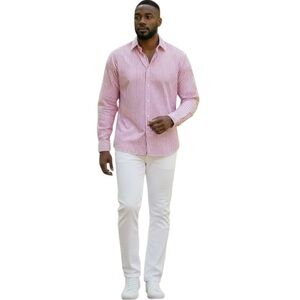 Michael Kors Red & Pink Herringbone Button Down Cotton Shirt - Men’s Large