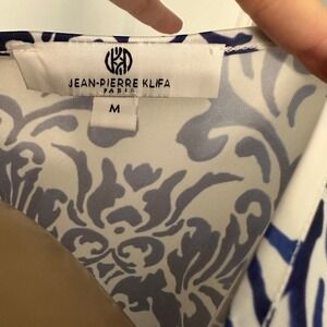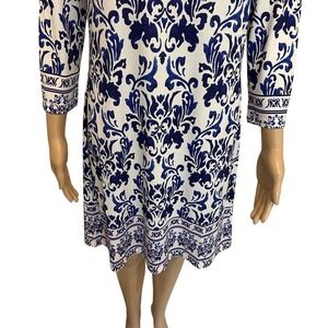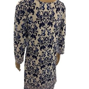 JEAN-PIERRE KLIFA Paris Blue White Floral Print 3/4 Sleeve Dress Size M