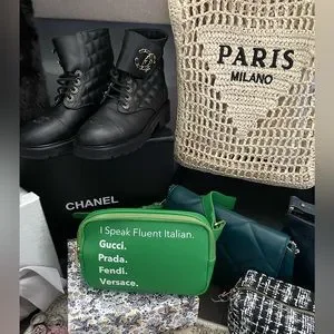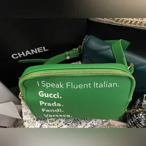 DEVON🌟Green “I Speak Fluent Italian” Bum Bag w/ Gold Hardware 🌟NWT