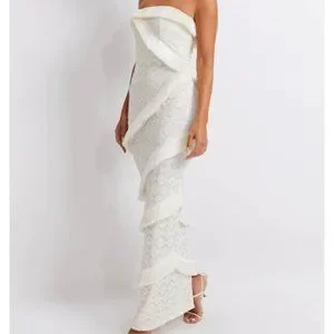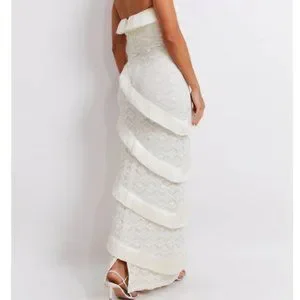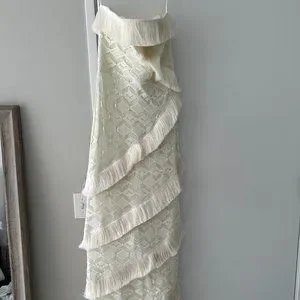 NWT SOLD OUT - PatBO Crochet Strapless Fringe Trim Maxi Size 2 in White. Perfect for engagement and wedding events. NEW WITH TAGS & NEVER BEEN WORN. Comes with free black PatBO dust bag.