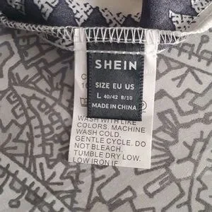 New knee length Runs a bit larger than a large. size10 Tie back, neck shoulder area