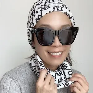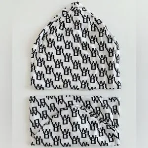 SOFT MONOGRAM KNIT BEANIE AND INFINITY NECK WARMER - WHITE BLACK PRINT 2 PIECE
