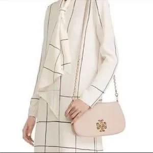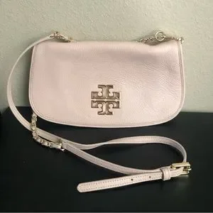 Tory Burch Britten Pale Pink Leather Crossbody Clutch Bag