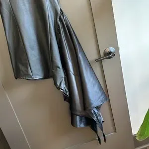 Vegan Leather & Satin Wrap Bodycon Dress - Black