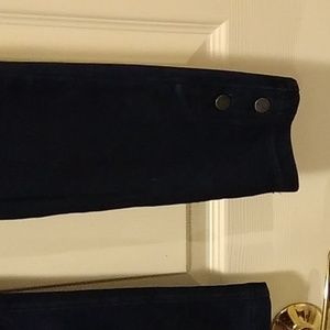 Vera Wang dark blue jeggings with brass button detail at bottom. Waist 30", length 36" This pair is very light weight. NWOT.