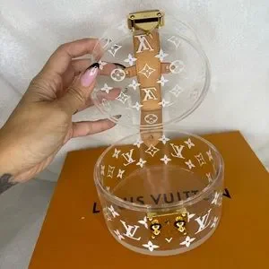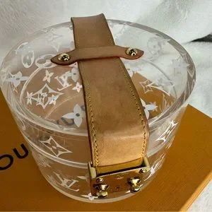 Plexiglass, rich leather and gleaming metal add up to an eye-catching ornamental box. With details that hark back to vintage House trunks, this glamorous new piece can be used to hold jewelry, makeup - or simply look stunning atop a dressing table.